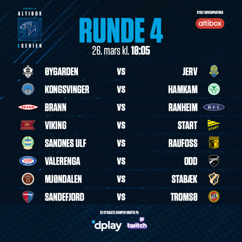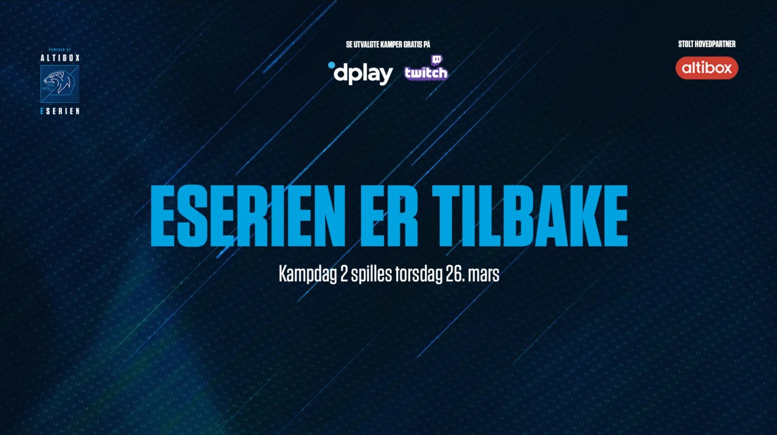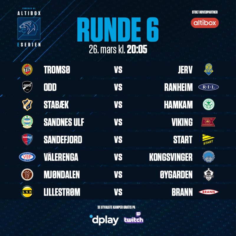 Hver kampdag streames seks utvalgte oppgjør i Altibox eSerien på Dplay.no og Altibox eSerien sin egen Twitch-kanal.