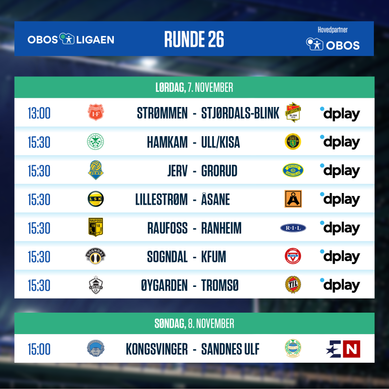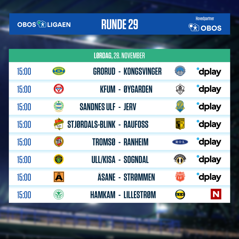 | Ull/Kisa | - | Grorud | Lørdag 1530 | Dplay |