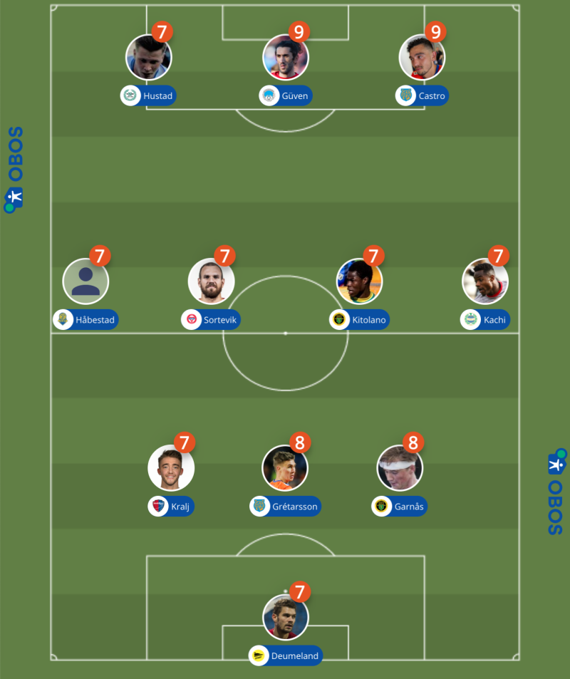 Laget som har blitt plukket ut av NTB sine reportere til rundens lag fra den nittende runden i OBOS-ligaen ser slik ut: