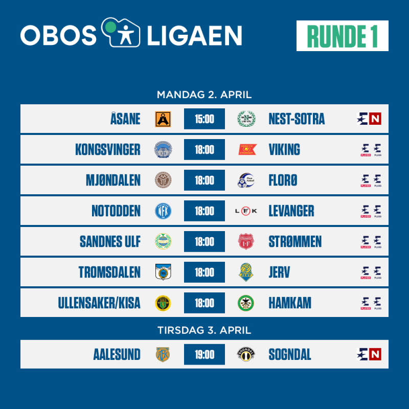 OBOS-ligaen har serieåpning 2. påskedag og avsluttes 11. november.