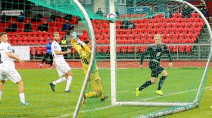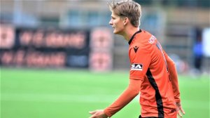 Bortekampen mot Raufoss var preget av stillingskrig, men også noen fete sjanser begge veier. Til slutt var det tp målvakter som kunne gå med hodet hevet høyt. Den ene debutant Sander Lønning. 18-åringen fikk sjansen i buret for de lyseblå etter både Aslak Falch og Pål Vestly Heigre var ute med skade. Oppgaven løste Sander med glans. Foto: Rune Helliesen